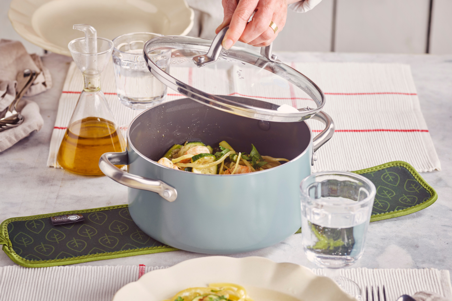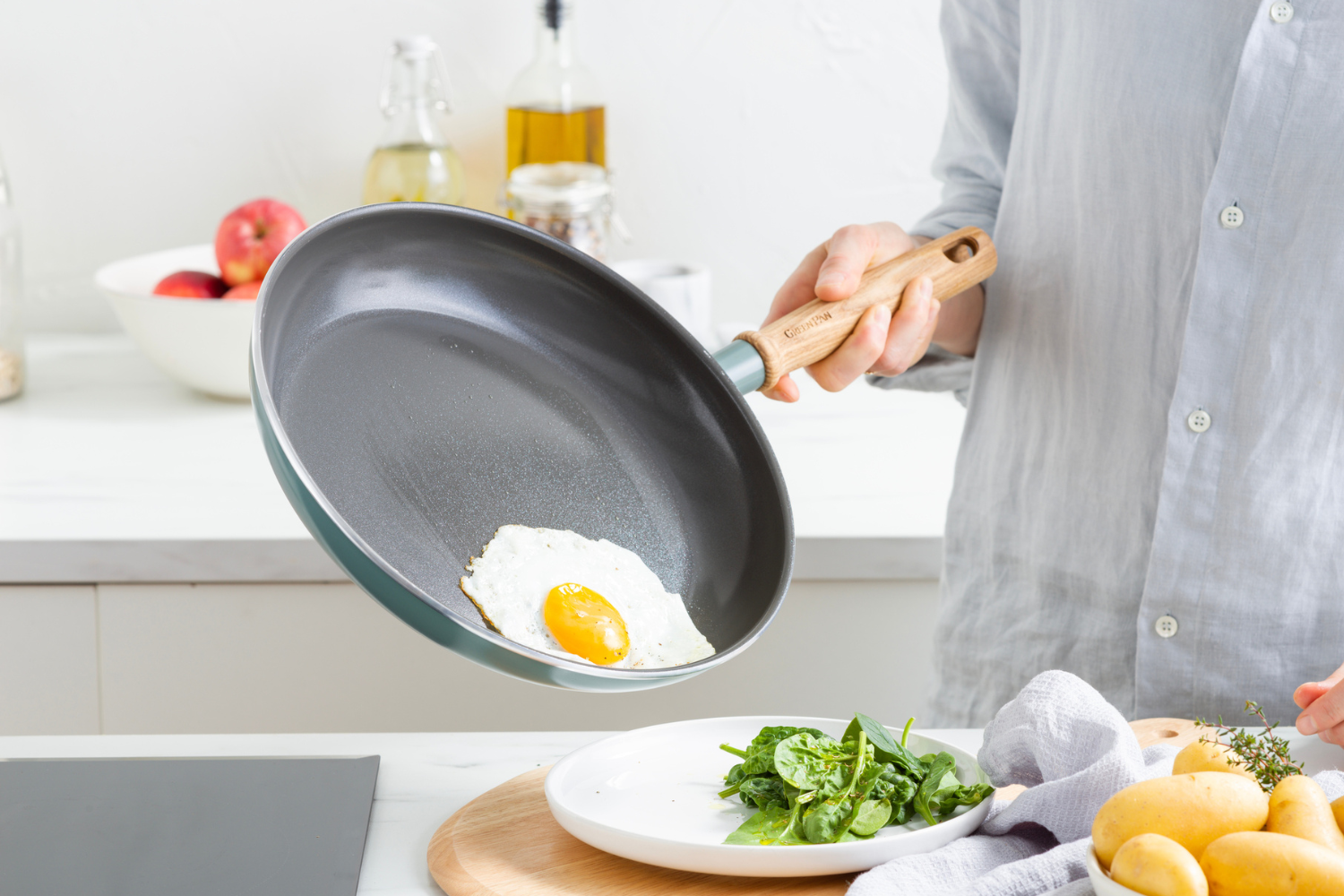 グリーンパンは世界で初めてフッ素樹脂を使用しないコーティング技術を生み出しました。誕生して以来、人体や環境に影響を及ぼすおそれのある化学物質(PFAS)、鉛やカドミウムなどを一切使用しない安心・安全なコーティングを使用し続けています。