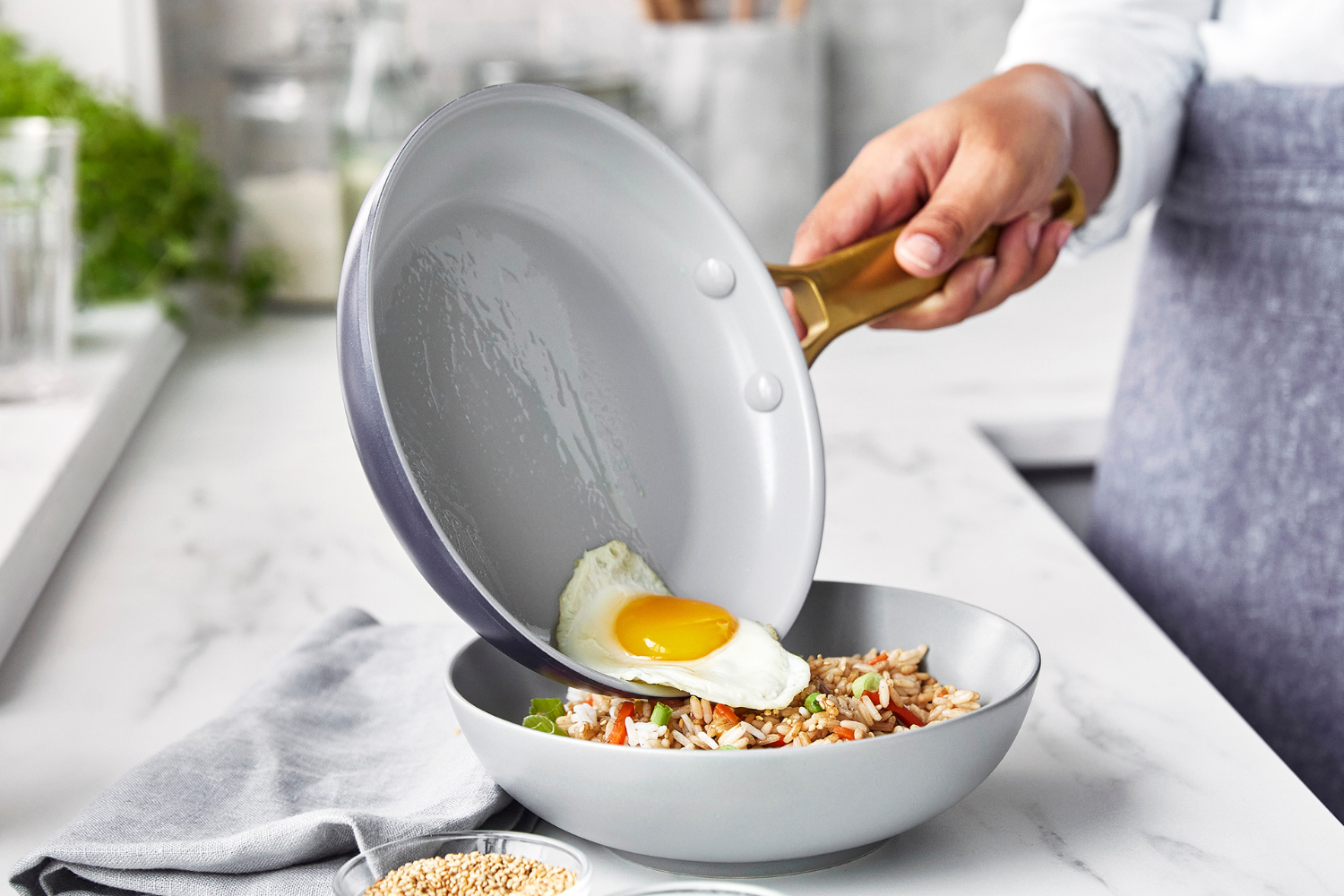ダイヤモンド粒子配合のセラミックコーティングは耐久性も高く、こびりつきにくさが長持ちし、日々の調理が快適になります。