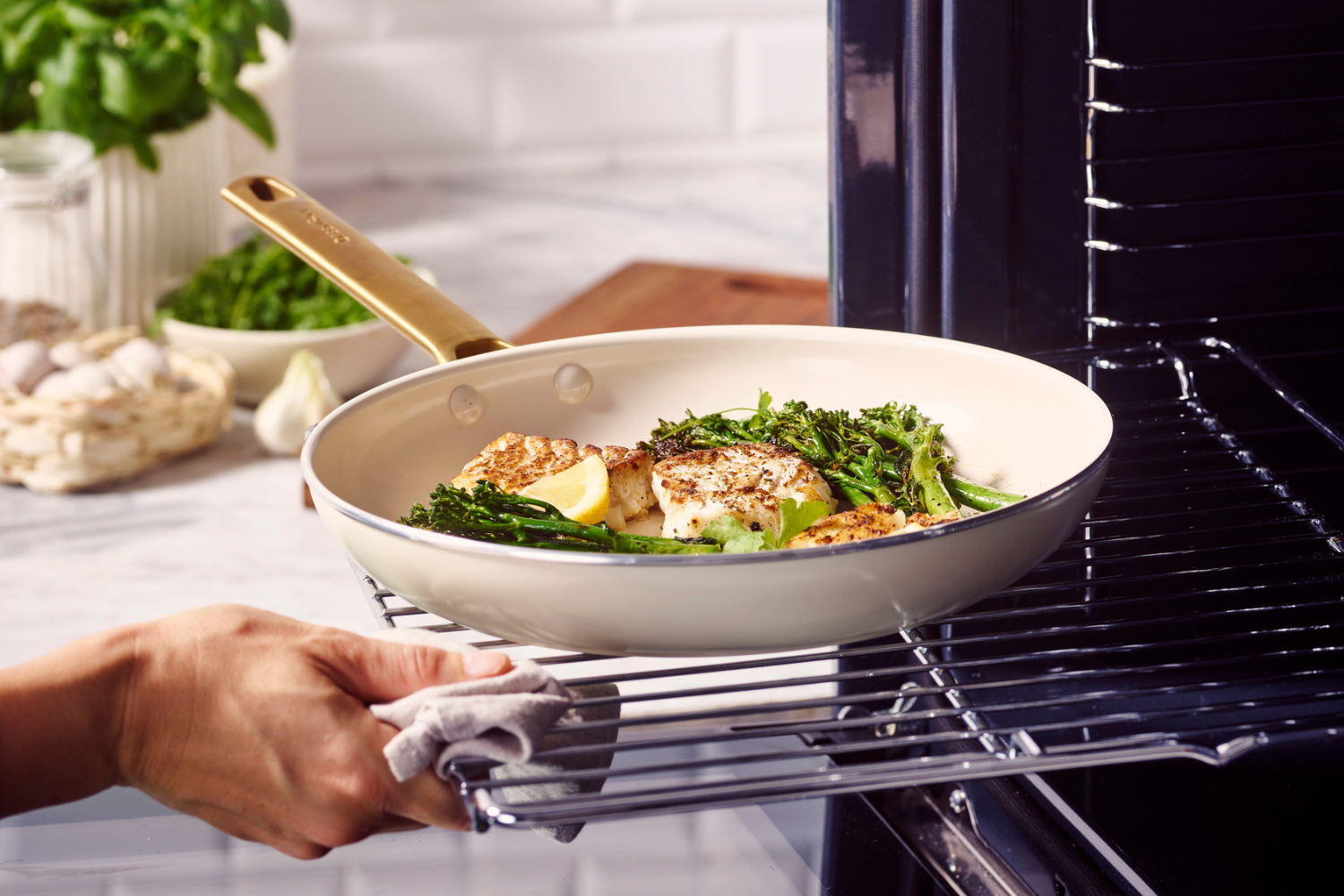 フライパンをそのままオーブンに入れての調理も可能なので、フライパンで仕込んだものをそのまま焼き上げることが出来、洗い物も削減します!