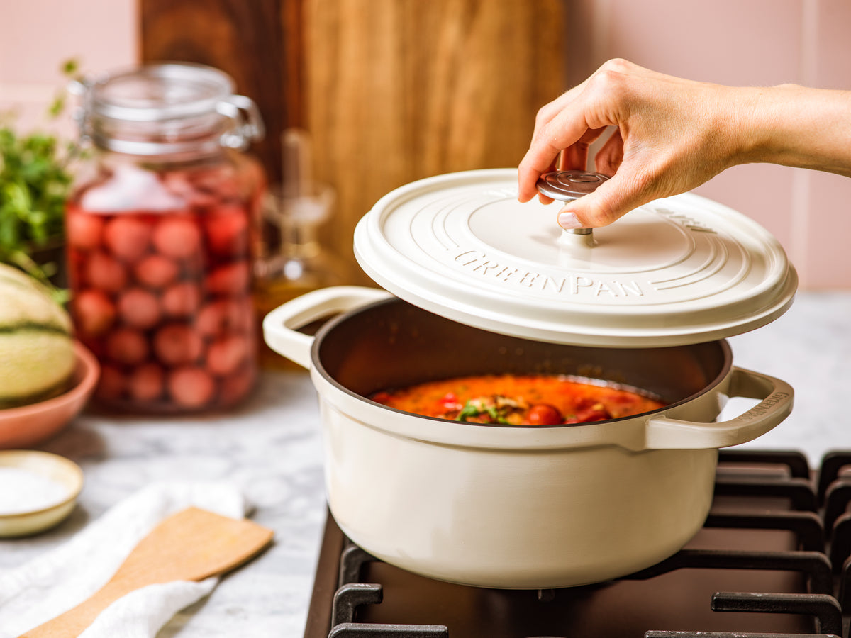 グリーンパンは世界で初めてフッ素樹脂を使用しないコーティング技術を生み出しました。誕生して以来、人体や環境に影響を及ぼすおそれのある化学物質(PFAS)、鉛やカドミウムなどを一切使用しない安心・安全なコーティングを使用し続けています。